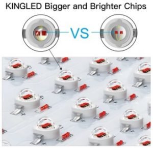 With the King Plus double chip LED grow lights, you can expect the product to consume power efficiently. This is true even if the company is using 10W for its LED lights.